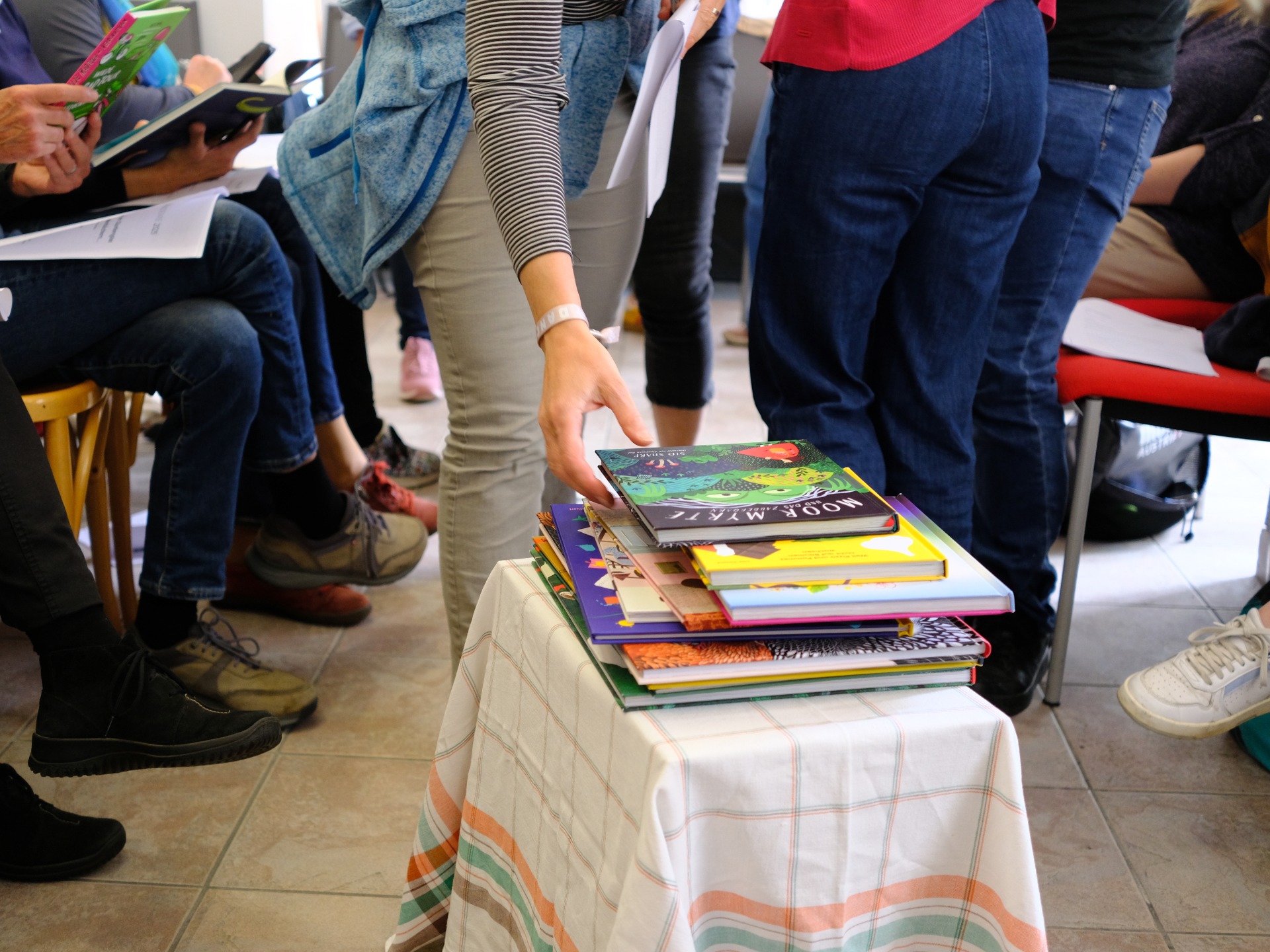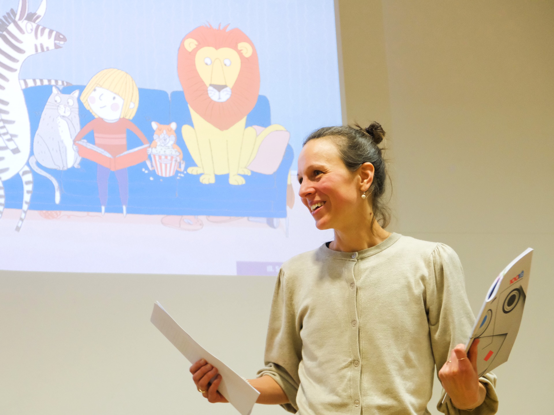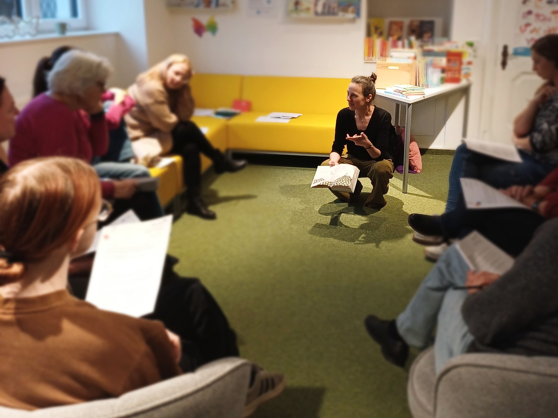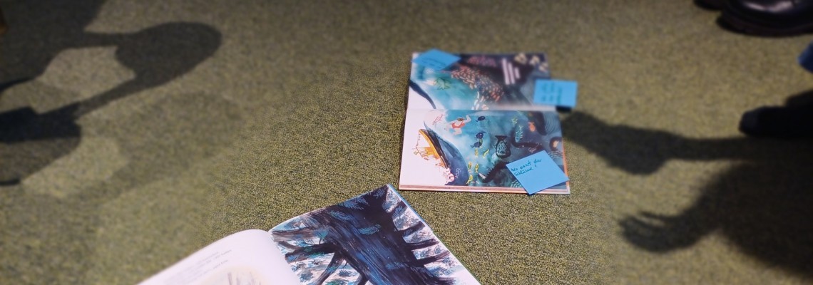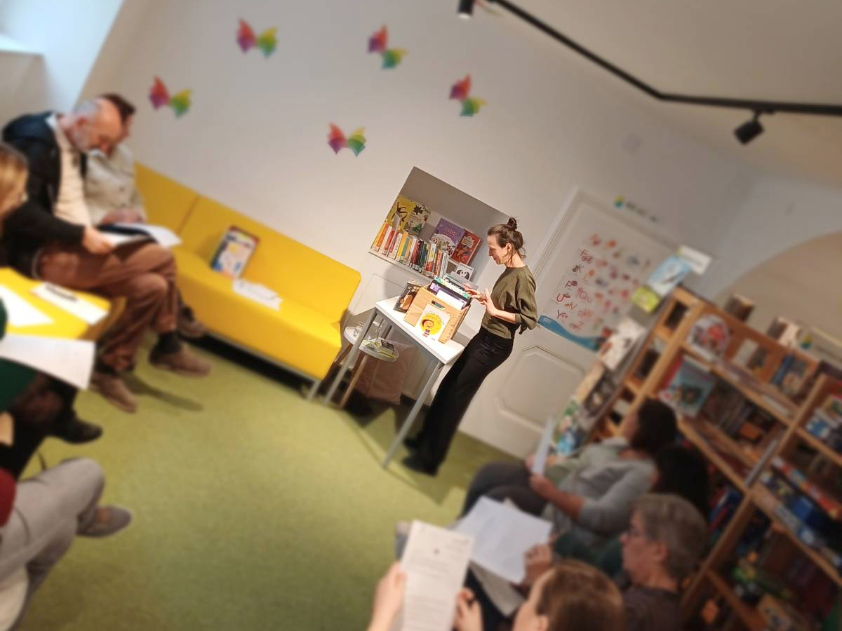 Das hier ist übrigens auch für alle, die mich fragen, was ich eigentlich genau mache :-). So sieht meine Arbeit aus: Ich erzähle Erwachsenen von Büchern für Kinder, bin dabei im Austausch mit inspirierenden Leuten und das immer mit vielen Büchern drumherum.